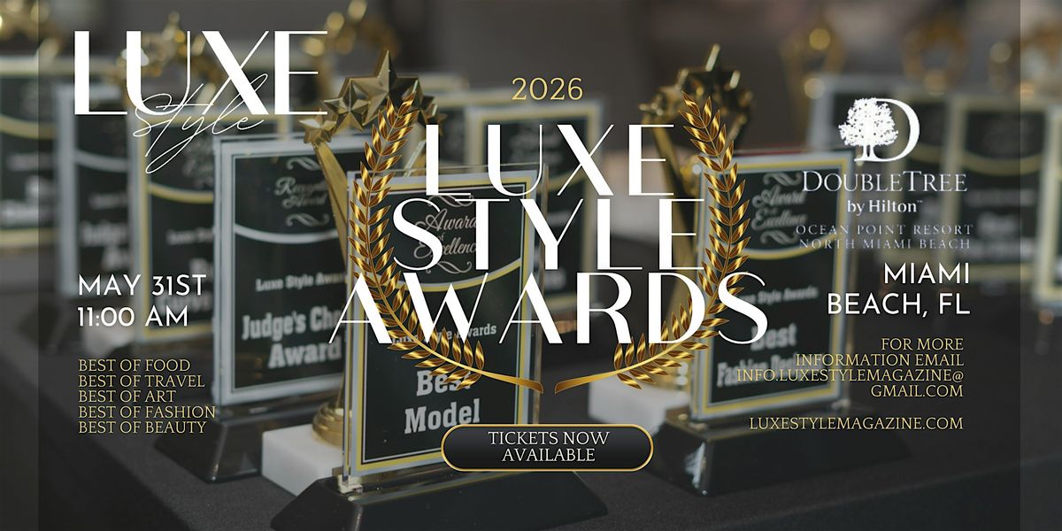 Get ready to celebrate the best in fashion and style at the Luxe Style Awards 2026! Join us on May 31, 2026 at 11:00 AM (Eastern Time) for an unforgettable day filled with glamour and fun. The event takes place at the stunning DoubleTree Resort & Spa by Hilton Hotel Ocean Point - North Miami Beach. Don’t miss out on this amazing in-person experience where style meets luxury!