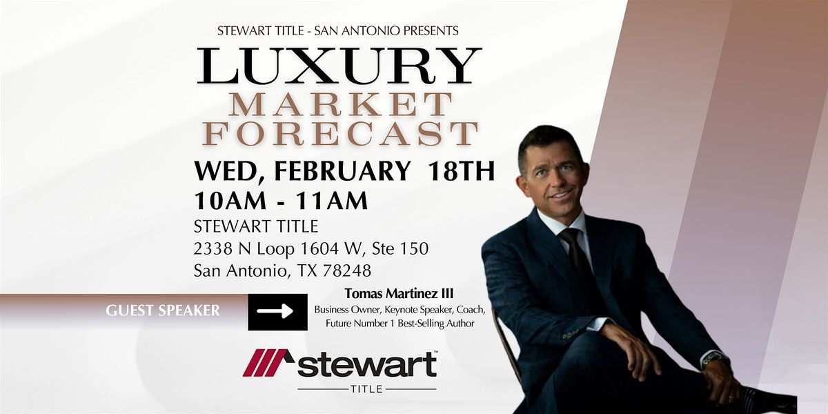 Welcome to the Luxury Market Forecast event happening at Stewart Title Company - San Antonio Bitters on February 18, 2026 at 10:00 AM !