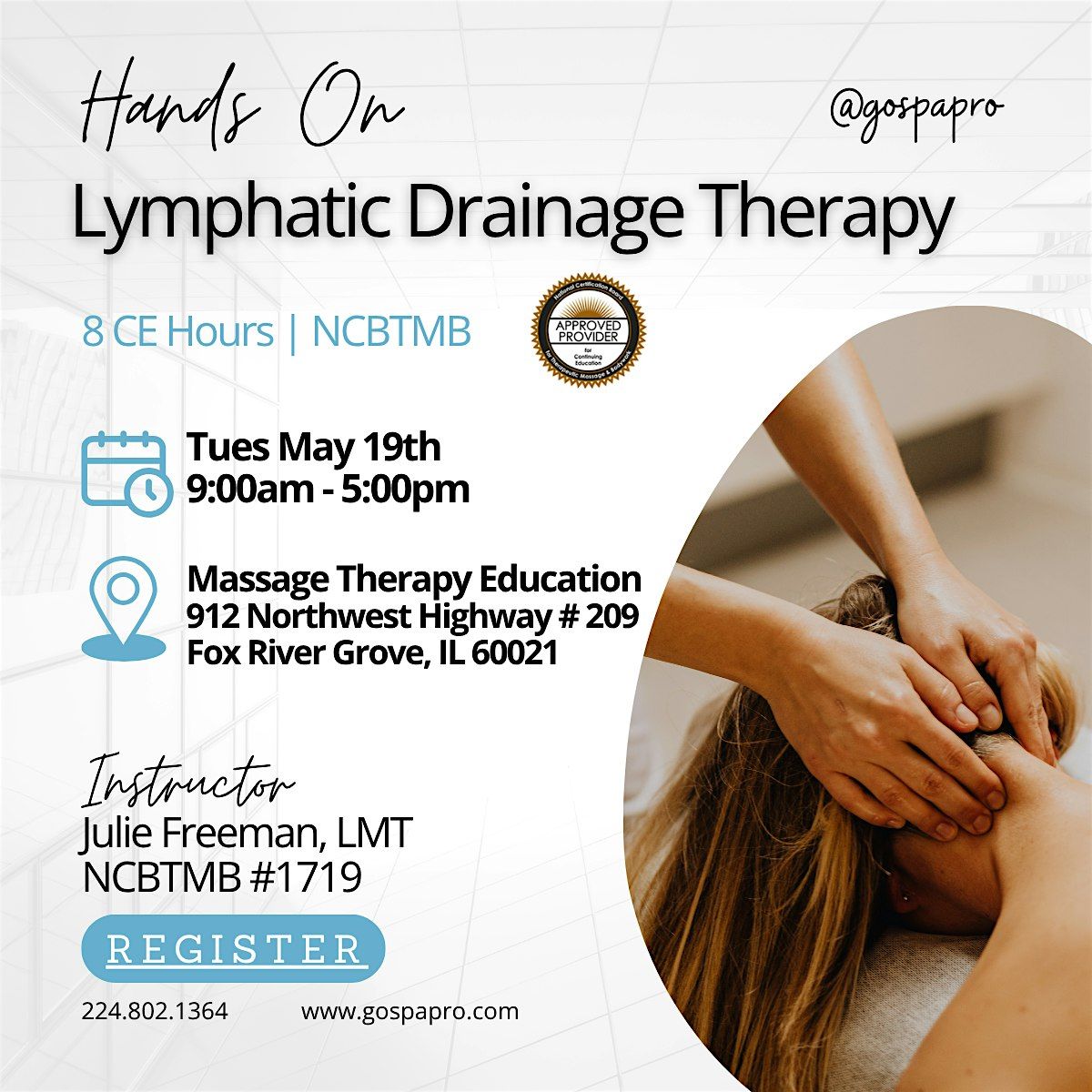 Join us for the Lymphatic Drainage CE Class on May 19, 2026 at 9:00 AM (Central Time). This class will cover techniques to help improve lymphatic circulation and enhance overall well-being. Whether you're a seasoned therapist or just starting out, this class is perfect for anyone looking to expand their skills. Don't miss out on this opportunity to learn and grow in your practice. See you there!