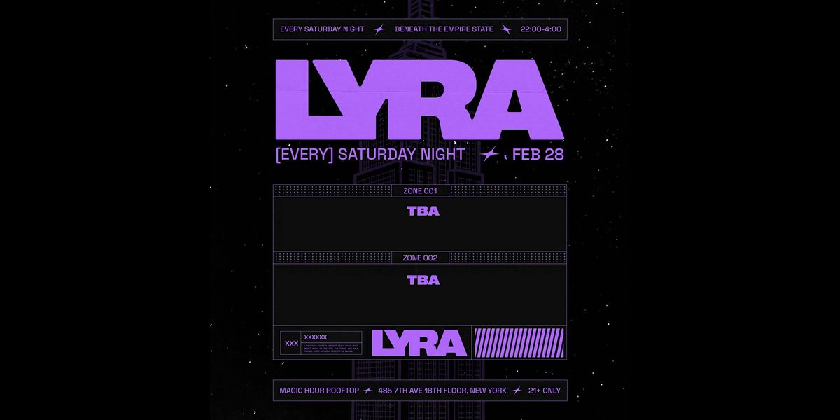 Introducing Lyra - a new rooftop party concept redefining Saturday nights in NYC. Perched beneath the Empire State Building with a retractable roof and panoramic skyline views, Lyra delivers two immersive zones of high-energy sound and atmosphere.