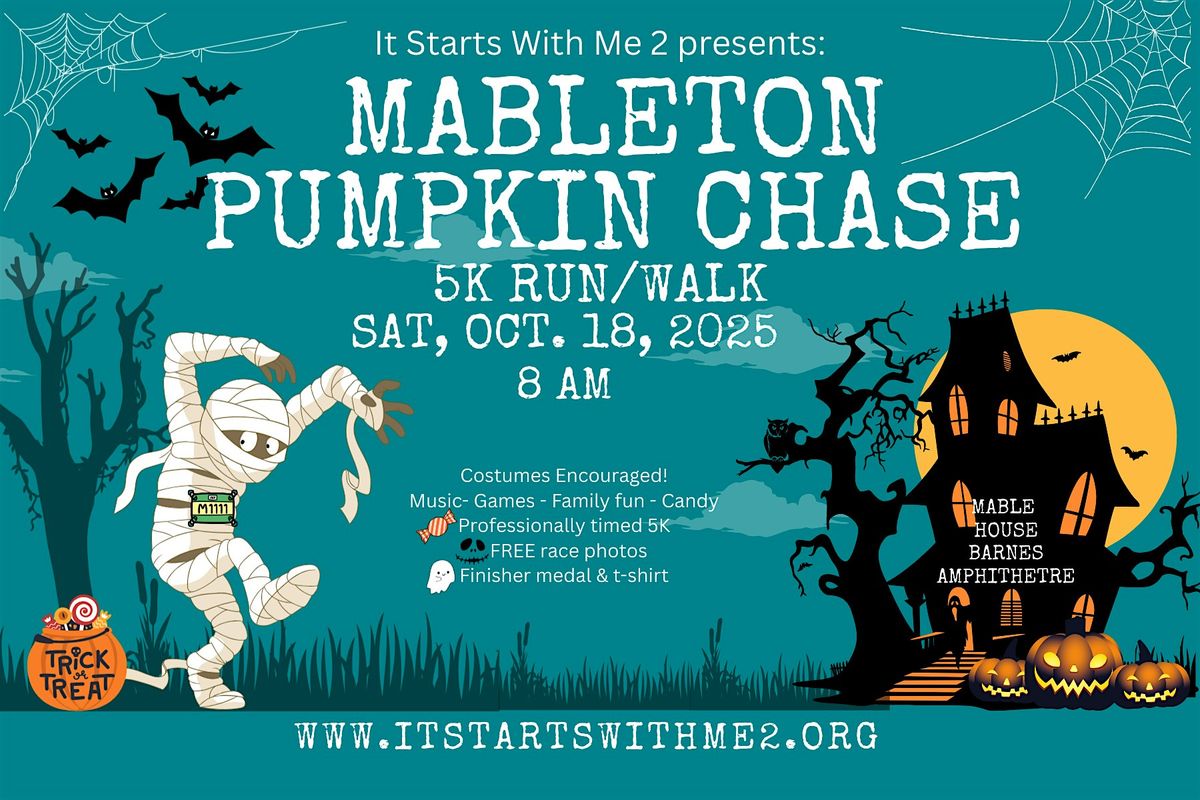 Get ready for a frightfully fun time at the Mableton Pumpkin Chase! Join us for a thrilling 3.1-mile run (or walk) filled with festive fall vibes, ghostly good fun, and of course—CANDY! All taking place at the Mable House Barnes Amphitheatre.