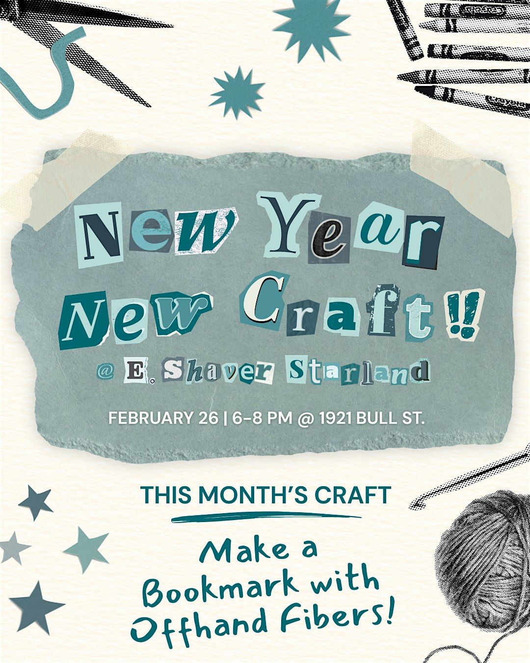 New Year, New Craft is a monthly creative workshop series at E. Shaver, Bookseller designed to help you try something new and make something by hand. Each month features a different craft led by a local artist or maker, welcoming beginners and curious creatives alike. Come learn a new skill, meet fellow makers, and leave with something you created yourself.