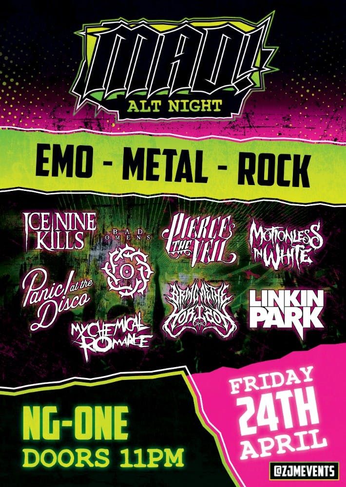 ZJM Events presents MAD! An alternative club night playing all of your favourite rock, metal and emo music from all eras. With full nightclub production and non stop great music from our in house alternative DJ.