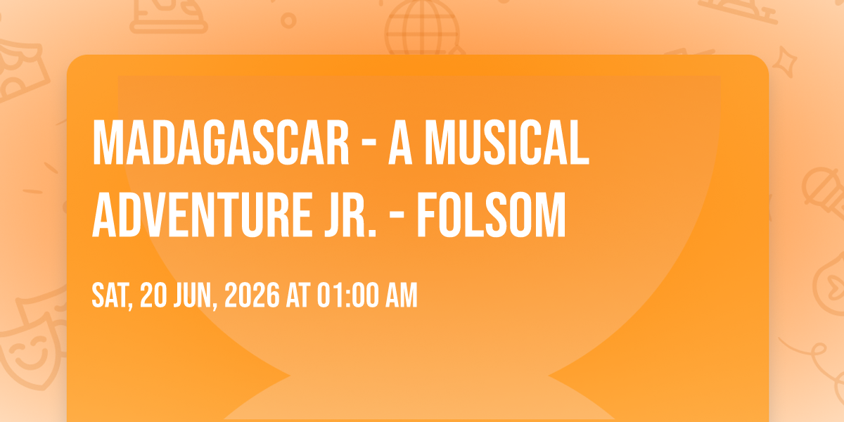 π Location: 38.6617, -121.128β¨ Experience the magic of Madagascar - A Musical Adventure Jr. - Folsom, where moments become memories that last a lifetime! ποΈ The iconic Harris Center - Stage 1 in Folsom, CA sets the perfect stage for an unforgettable celebration on June 20th, 2026 at 01:00 AM. π It's been a curated experience that brings together the best of entertainment and innovation, creating an atmosphere of wonder and excitement. From the moment you arrive, you'll be immersed in a world where the ordinary transforms into the extraordinary. π Book early to secure your place in what promises to be an event that will be talked about for years to come!