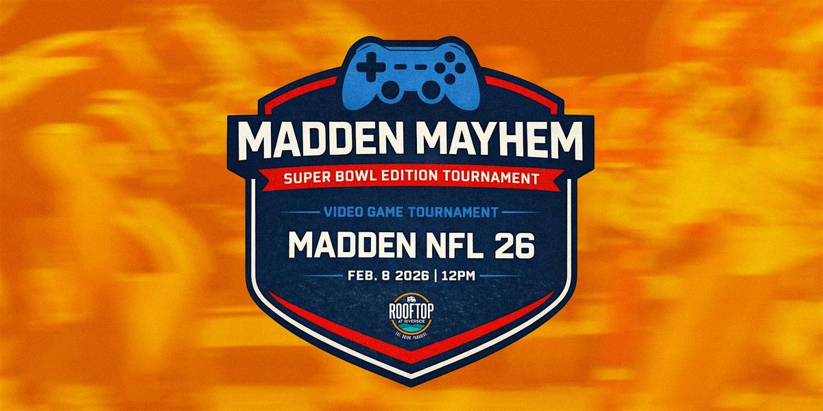 Madden Mayhem – Super Bowl Edition Tournament is a competitive, high-energy Madden NFL tournament taking place on Sunday, February 8, 2026, at Rooftop at Riverside in Bonita Springs, Florida. Timed perfectly with Super Bowl weekend, this event is designed for skilled Madden players, football fans, and competitive gamers looking to test their abilities in a live tournament setting.