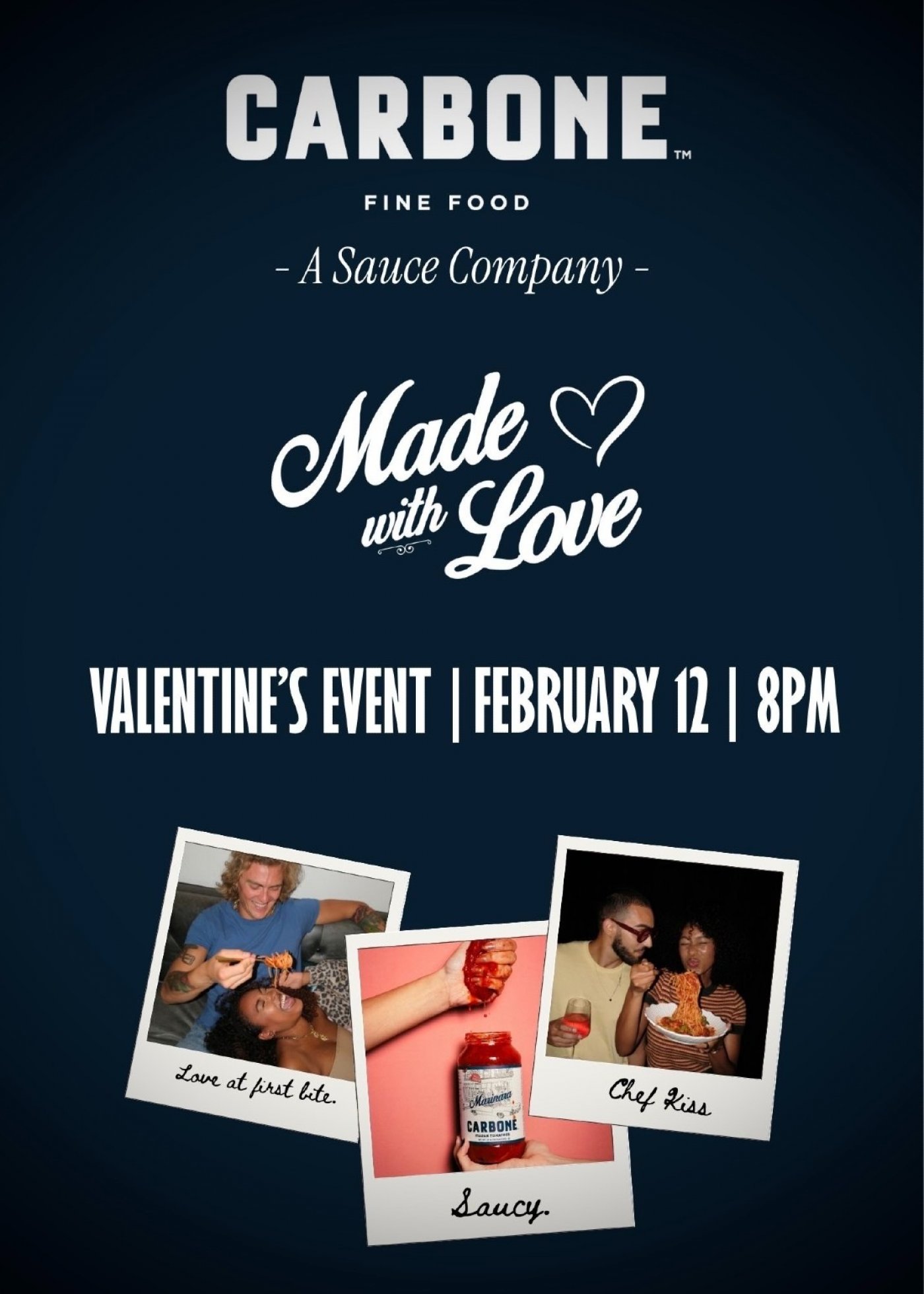 Join Carbone Fine Food for Made with Love, A Saucy Affair on February 12th at 8:00 PM at No Vacancy (1727 N Hudson Ave, Los Angeles, CA) - a Valentine’s night centered around crave-worthy bites, signature sauces, unexpected moments, and just the right amount of indulgence.