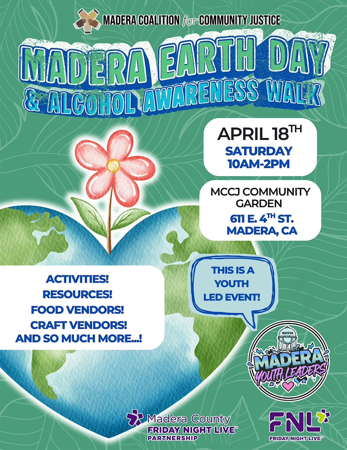 Get ready to celebrate Mother Nature with us at our Madera Youth Leaders led Madera Earth Day 2026! Come hang out in person, enjoy fun activities, learn cool eco-friendly tips, and connect with the community. It’s all about loving our planet and having a great time together. Don’t miss out on this awesome chance to make a difference and meet fellow Earth lovers. See you there!