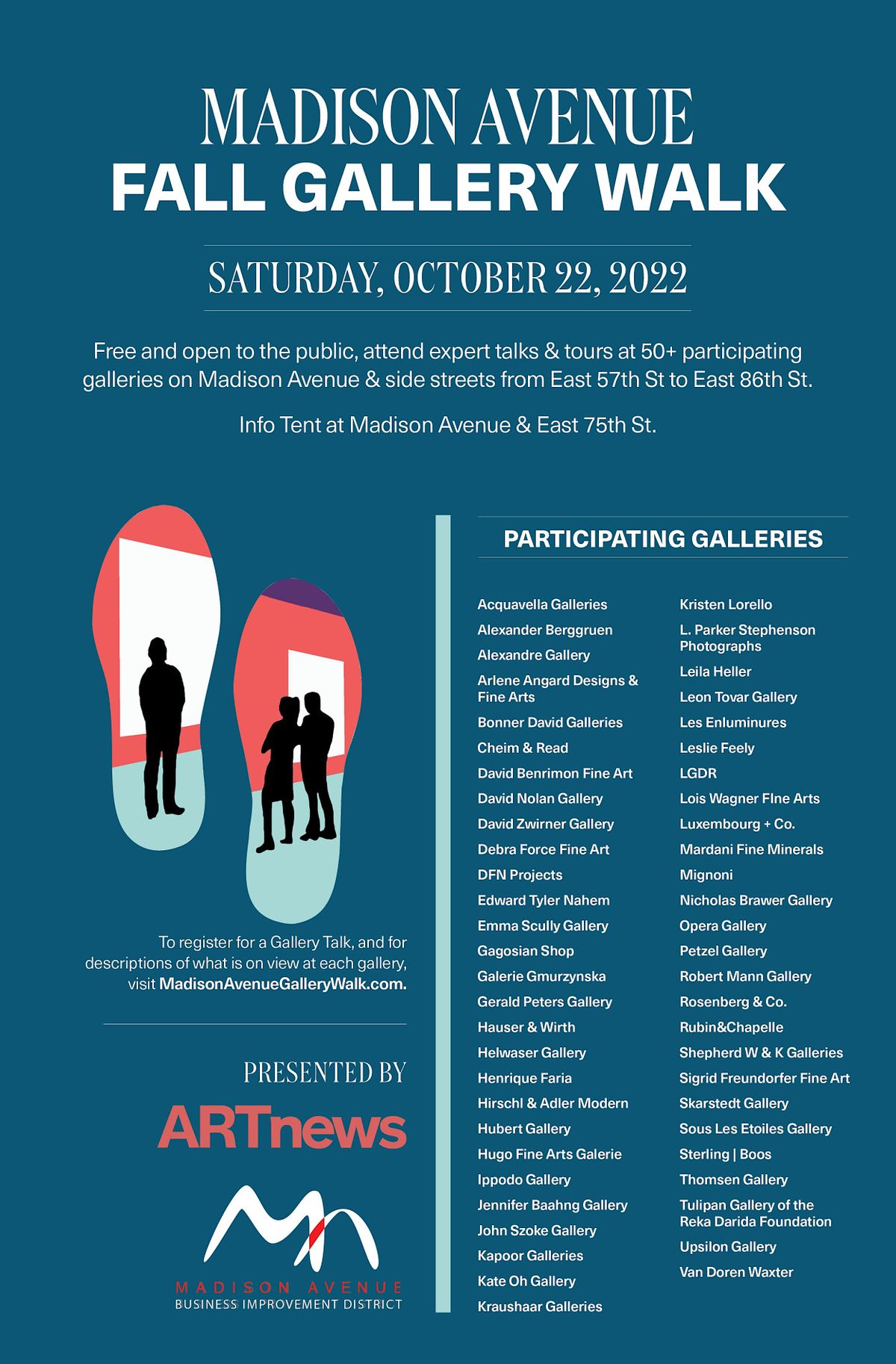 Join ARTnews and Madison Avenue’s galleries for our Madison Avenue Fall Gallery Walk on Saturday, October 22. This free event invites the public to visit participating galleries, view their fall exhibitions and attend expert talks led by artists and curators on Madison Avenue & side streets from East 57 to East 86 St.