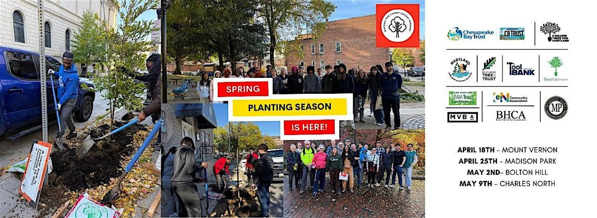 Join us to support the health of the communities’ tree canopy by lending a hand! Madison Park Improvement Association and Midtown are co-hosting a volunteer tree planting event from 9:00 AM to 12:00 PM on Saturday, April 25th.There will be trained tree keepers on staff to provide direction and tools provided for planting. Volunteers will meet at Mosher West Park (1420 Eutaw Place) and split into teams, and complete plantings throughout the neighborhood. No experience is necessary to participate, and all are welcome!