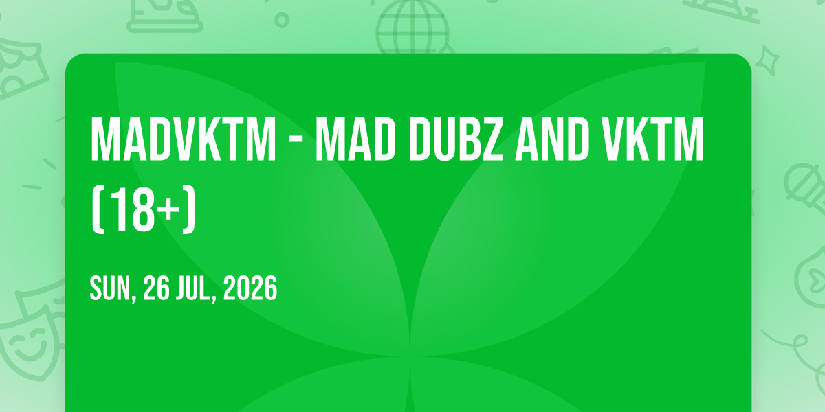 📍 Location: 40.7318, -73.9892✨ Enter a world of endless possibilities at MADVKTM - Mad Dubz and VKTM (18+), where every moment tells a story! 🏛️ The stunning Webster Hall in vibrant New York, NY transforms into a realm of wonder on July 26th, 2026 at 03:00 AM. 🌟 They have crafted an experience that goes beyond the ordinary, combining elements of surprise, delight, and pure entertainment. Every detail has been thoughtfully considered to ensure your journey with us is nothing short of extraordinary. 🎯 Join fellow adventure seekers and memory makers in this celebration of imagination and innovation. 🎊 Reserve your spot today and be part of something truly special!
