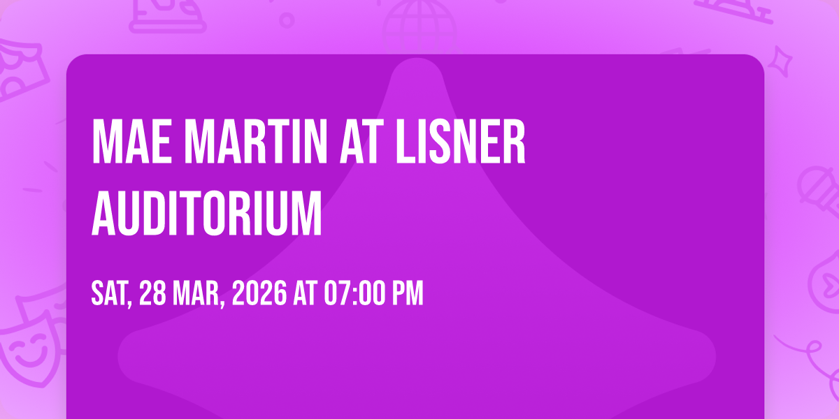 🎉 Prepare to be amazed at Mae Martin at Lisner Auditorium, the most anticipated gathering of the season! 🌟 Set against the stunning backdrop of Lisner Auditorium in vibrant Washington, DC, this event promises to redefine your expectations. 📅 Mark your calendars for April 12th, 2026 at 07:00 PM and get ready to immerse yourself in an atmosphere of wonder and excitement. ✨ From the moment you arrive, you'll be transported into a world where memories are made and stories come alive. They have crafted an experience that perfectly harmonizes entertainment, innovation, and community spirit. 🌈 Join us as we create moments that will be discussed for years!