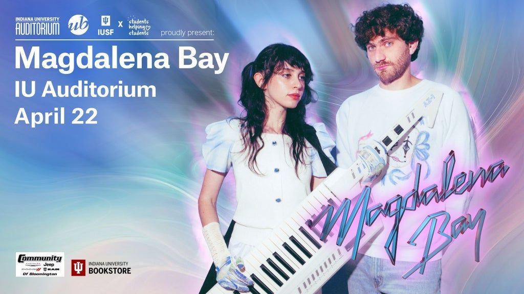 Magdalena Bay is bringing their kaleidoscopic pop universe to IU Auditorium as part of Little 500 week. The Los Angeles based duo of Mica Tenenbaum and Matthew Lewin is known for infectious hooks, synth-driven beats, and an immersive sound that blends futuristic pop with nostalgic flair. Their high-energy live shows pair bold visuals with meticulously crafted songs that hit hard and stick with you.