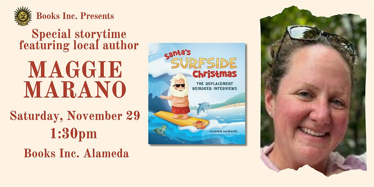 Join us for our Christmas Season Kickoff Special Storytime featuring local author, Maggie Marano sharing her holiday classic, Santa’s Surfside Christmas: the Replacement Reindeer Interviews.