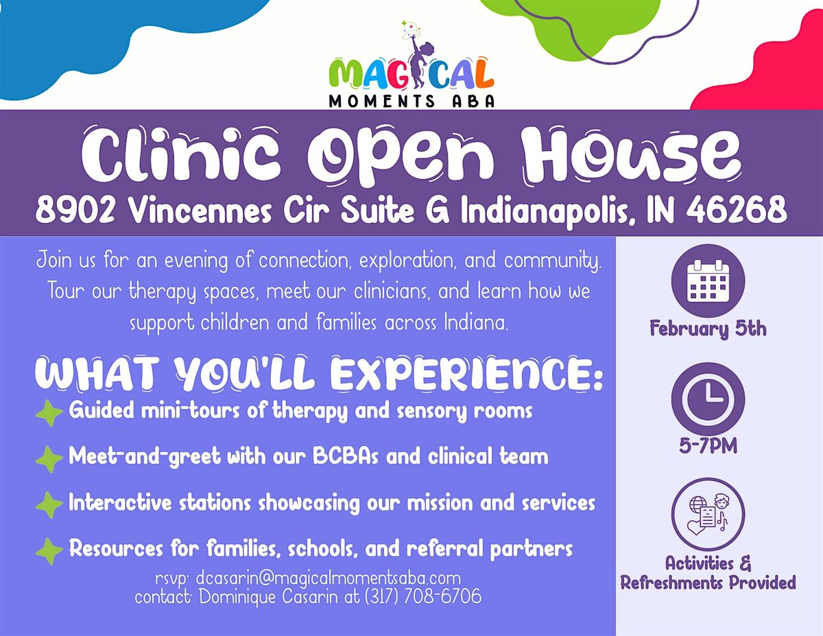 Join us in person for a fun and friendly day where you can explore what Magical Moments ABA has to offer. Meet our awesome team, learn about our approach, and see how we create those special moments every day. It's a great chance to ask questions, tour the space, and connect with others in the community. We can't wait to meet you!