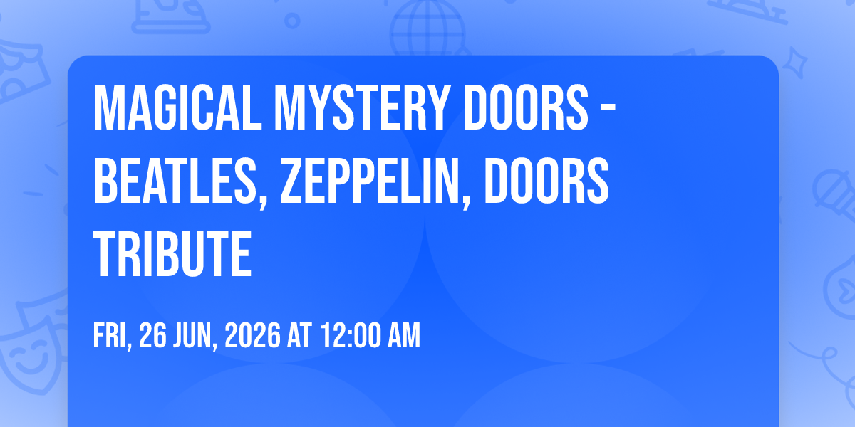 π Location: 39.3633, -74.4145β¨ Discover the extraordinary at MAGICAL MYSTERY DOORS - Beatles, Zeppelin, Doors Tribute, where magic meets reality in ways you've never imagined! ποΈ Set in Ovation Hall at Ocean Resort Casino nestled in bustling Atlantic City, NJ, this event promises to be a landmark occasion. π Taking place on August 14th, 2026 at 12:00 AM, it's going to create an atmosphere where every moment becomes a cherished memory. π Immerse yourself in an experience crafted with attention to every detail, designed to surprise and delight at every turn. They have worked tirelessly to ensure this event exceeds all expectations, bringing together elements of entertainment, innovation, and pure joy. π Don't miss your chance to be part of this remarkable journey!