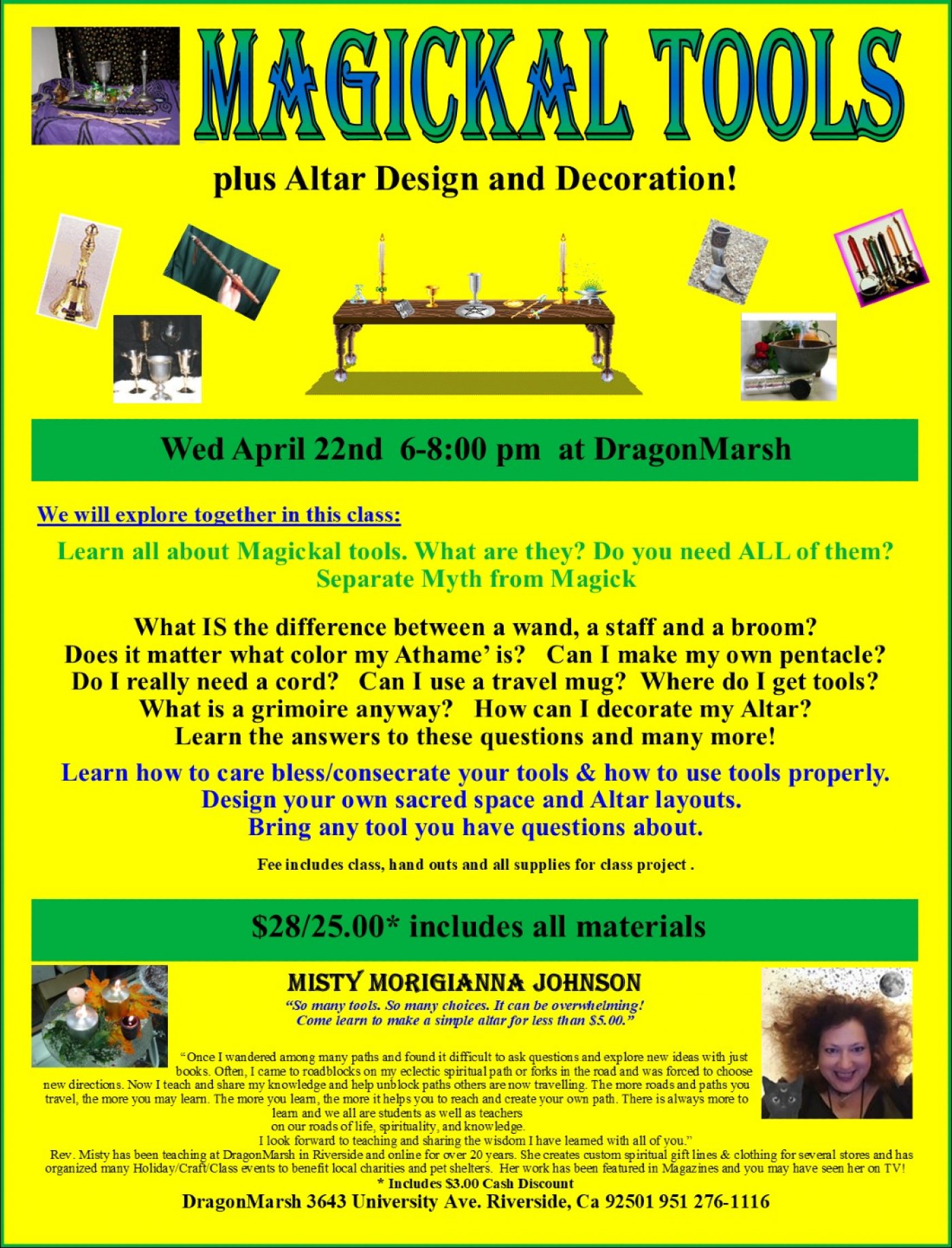 Learn how to care bless/consecrate your tools & how to use tools properly.