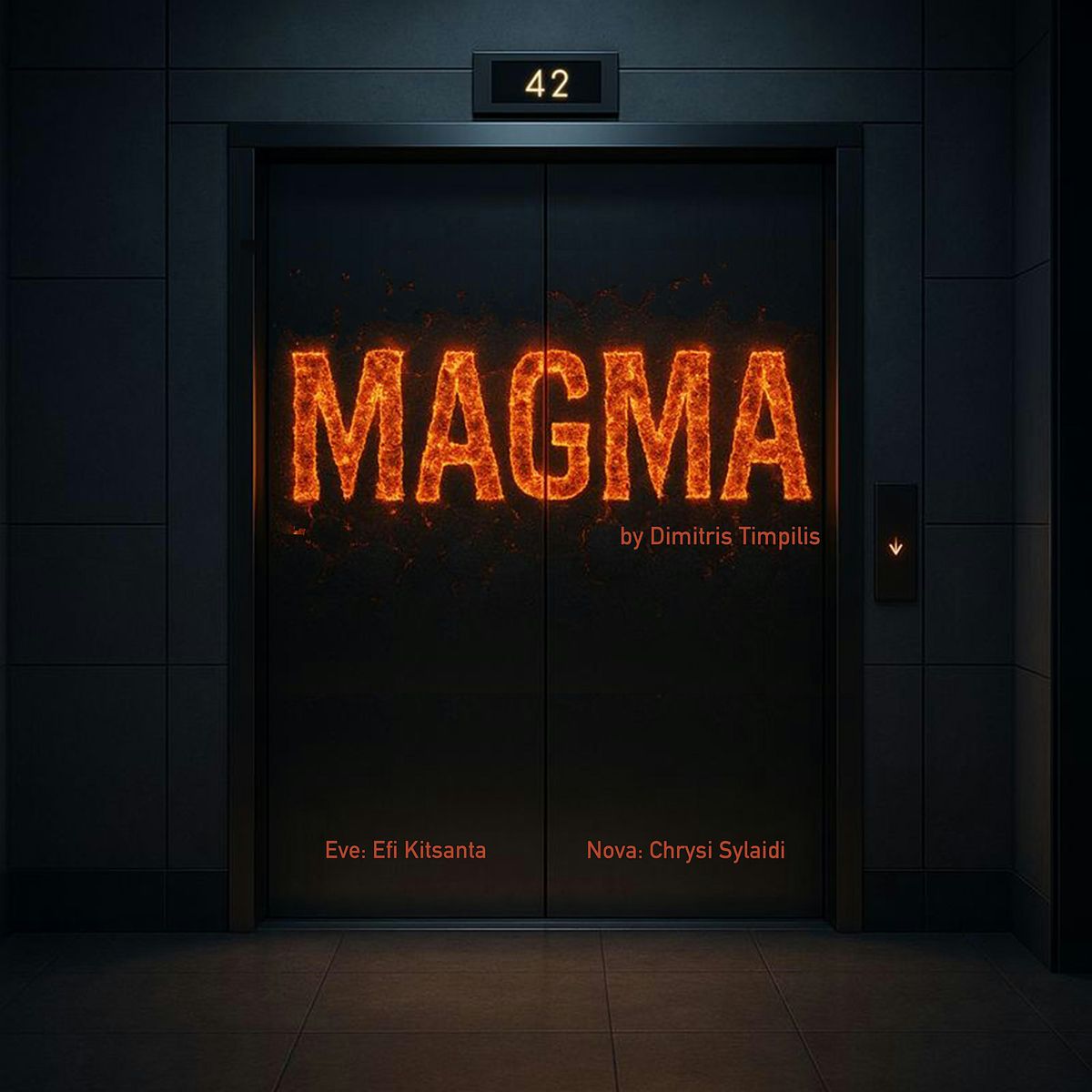 Magma is a two-character sci-fi existential comedy, where Eve, a human worker, and Nova, a humanoid AI colleague, find themselves trapped in an elevator between floors and between increasingly unsettling questions about consciousness, free will, work anxiety, existential anxiety, and what separates the organic from the artificial.