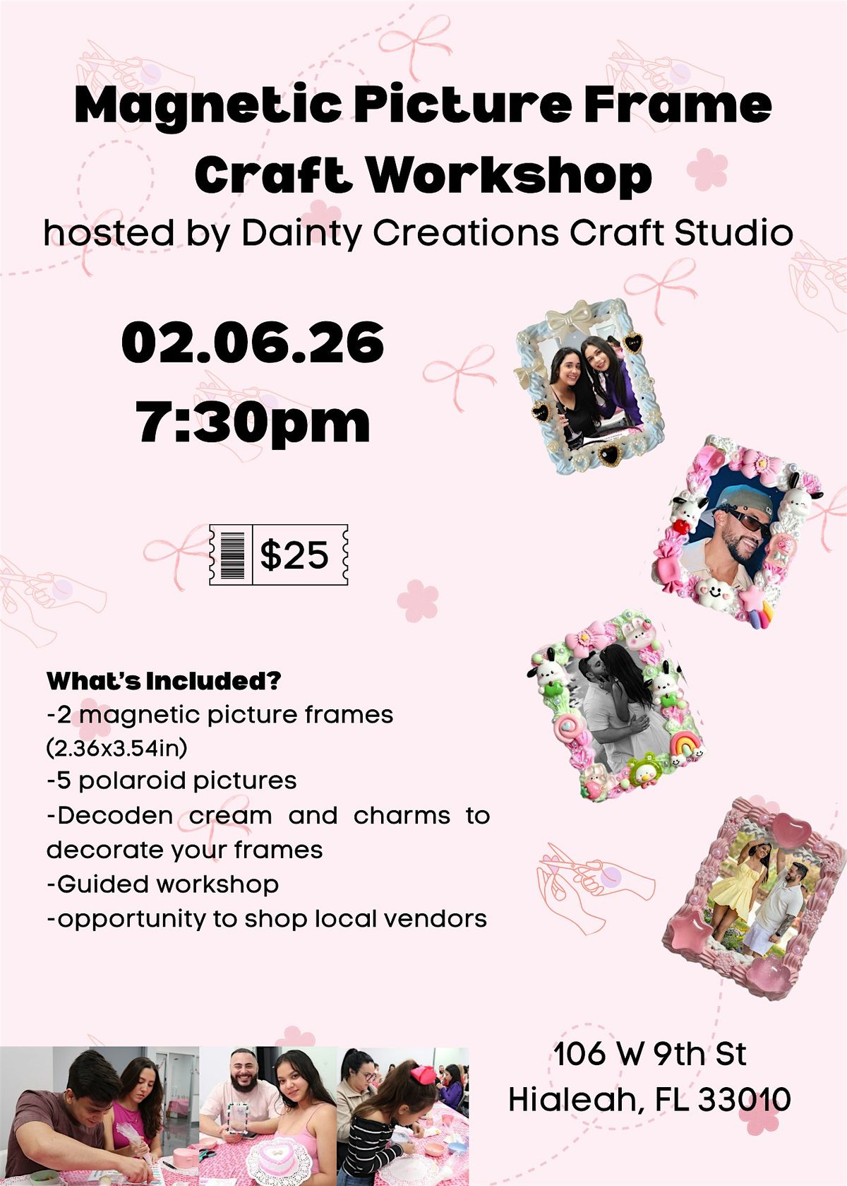 Join us for a dreamy Valentine’s themed craft night where you’ll design your own magnetic photo frames using decoden cream, charms, and personalized photos.