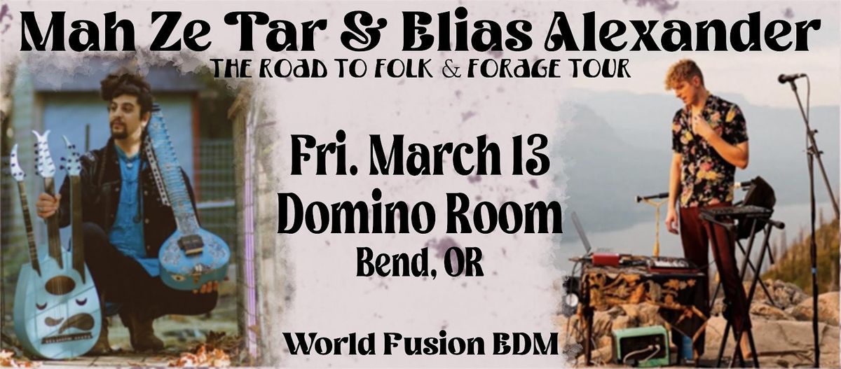 Get ready to ignite the night at March 13 at the Domino Room in Bend, OR with an unforgettable evening of genre-bending soundscapes and electrifying performance energy! Māh Ze Tār brings a soul-stirring fusion of ancient eastern melodies and modern electronic rhythms, weaving sitar, oud, ney and duduk into grooving bass lines that transport listeners through lands and traditions both timeless and fresh. Sharing the stage, Elias Alexander crafts a vibrant, boundary-breaking journey blending traditional Scottish and American instruments like bagpipes, fiddle and whistles with driving electronic beats and live looping that take audiences from heartfelt moments to dance-floor euphoria. This is a night for explorers of sound, seekers of connection, and lovers of deep, moving music. This event is a part of the "Road to Folk & Forage". Maz and Elias will headlining Folk & Forage Festival in May.
