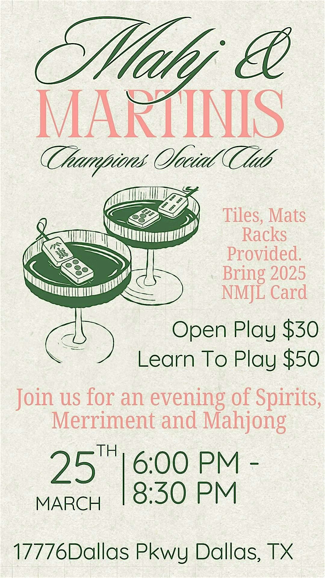 Join us for an evening of spirits, merriment, and Mahjong as we gather at Champions Social Club, a brand-new social club coming to Dallas. Be among the first to see and experience this exciting new space while enjoying a lively night of Mahjong, cocktails, and great company.