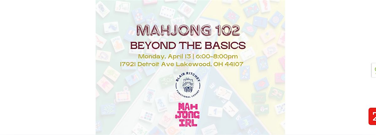Ready to level up your Mahjong game? This class is designed for players who have completed Mahjong 101 or already have a basic understanding of the game. We'll dive deeper into strategy, tile reading, and gameplay flow so you can play with more confidence and intention.
