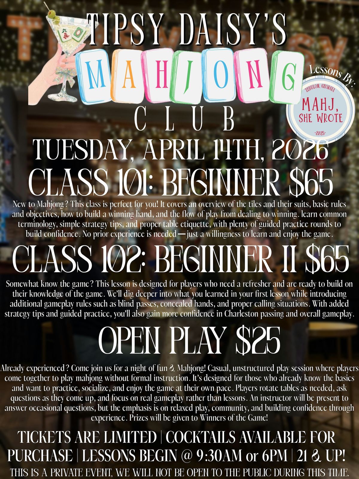 MAHJONG CLUB @ TIPSY DAISY