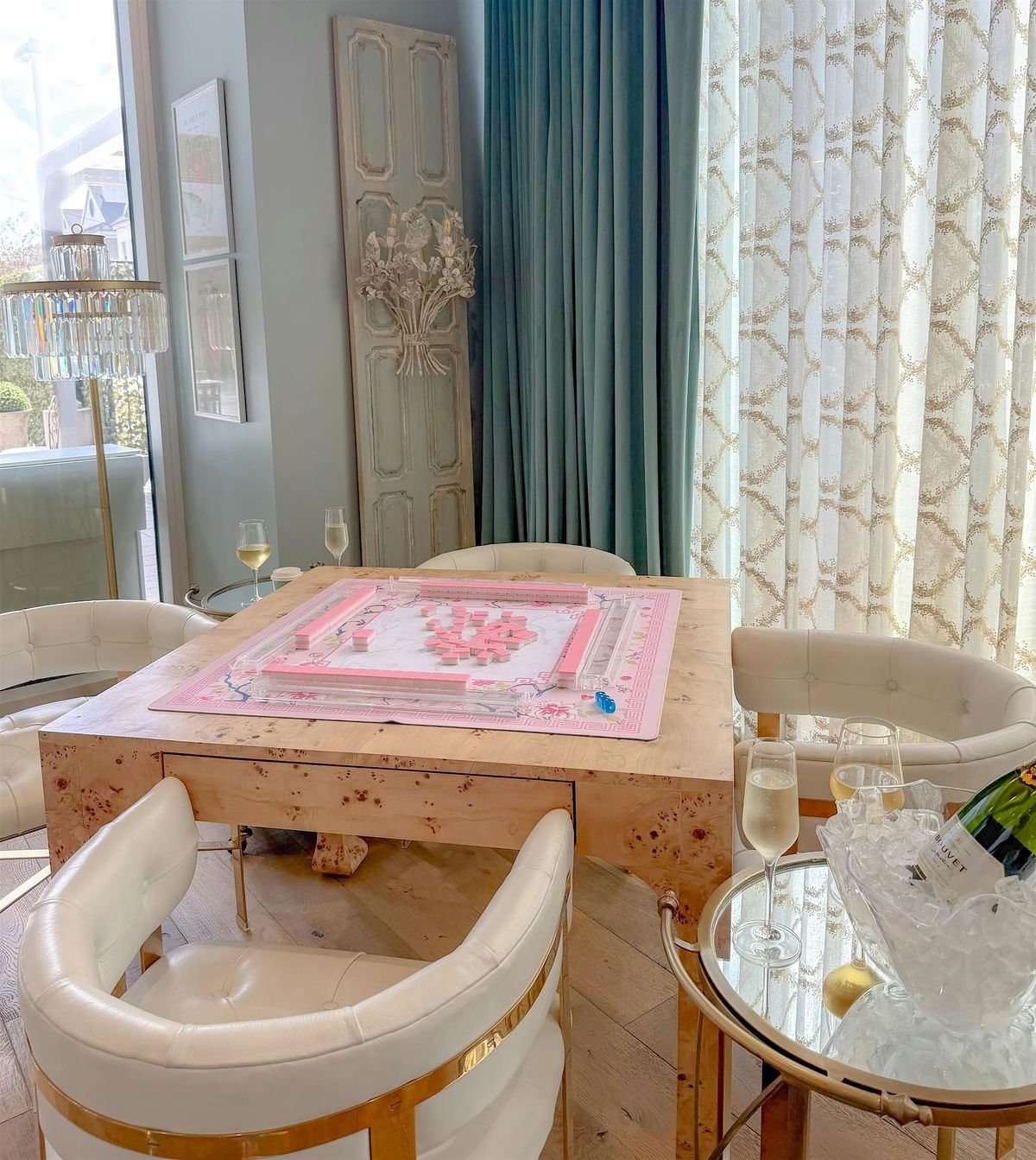 We have two tables set and ready for your game. It’s $40 per table (2-4 guests) for a 2-hour session, and that includes a little something to sip...enjoy a cup of coffee or glass of prosecco per person, on us. Cards, tiles, and mats are all provided (and belong to us!), so please treat them with care and reset the table when your game wraps up.
