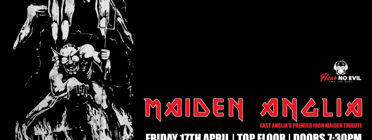 TWM Live Presents: MAIDEN ANGLIA - A Tribute to IRON MAIDEN Friday 17th April, Doors 7:30pmThree Wise Monkeys, ColchesterReturning to Three Wise Monkeys Colchester Maiden Anglia will be bringing you an extended set of classic Maiden to start your weekend off the right way!Doors open at 7:30 PM, with tickets priced at just £12 plus booking fee.Please note that access to the top floor of Three Wise Monkeys does not have a lift, but there are rest opportunities between each flight of stairs.Viewer discretion is advised: This show may potentially contain flashing and strobing lighting effects.We wanted to inform you of our refund policy regarding event tickets. Please note that we will be unable to process any ticket refunds within 7 days of the event.We understand that circumstances may arise that prevent you from attending the event, but unfortunately, we are unable to accommodate refund requests within this timeframe.