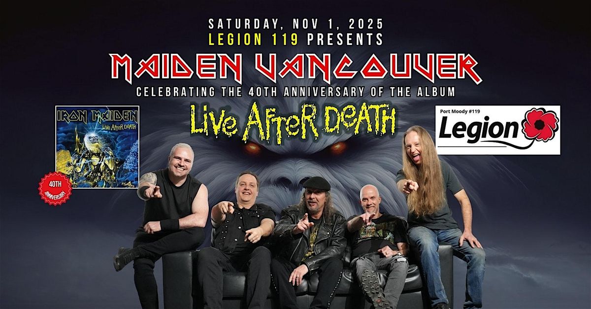 Maiden Vancouver is bringing our 40th anniversary of Maiden’s Live After Death celebration to you. We will be playing an opening set of Maiden classics from the first 9 albums and then playing the entire Long Beach Arena Setlist featured on the Live After Death double album and Concert Video.