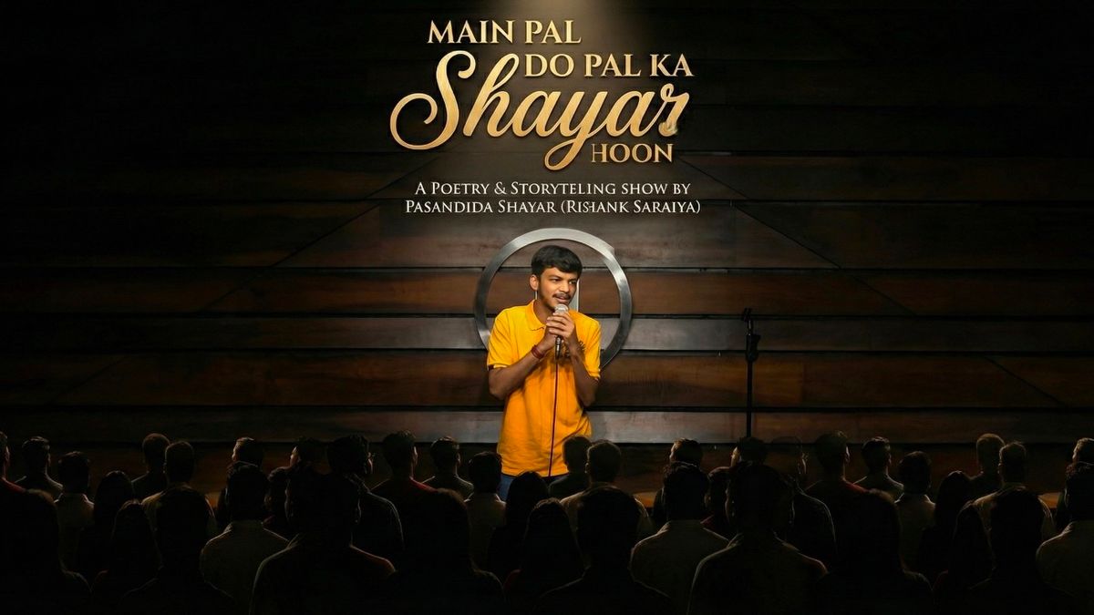 “Main Pal Do Pal Ka Shayar Hoon” is a heartfelt poetry and storytelling show by pasandida shayar (Rishank Saraiya ).This experience takes you on a roller coaster of emotions, where every story unfolds with perfectly placed sher, shayari and nazms that match the mood of the moment.A show that celebrates love, pain, joy, nostalgia, and everything in between—told through words that linger long after the applause fades.