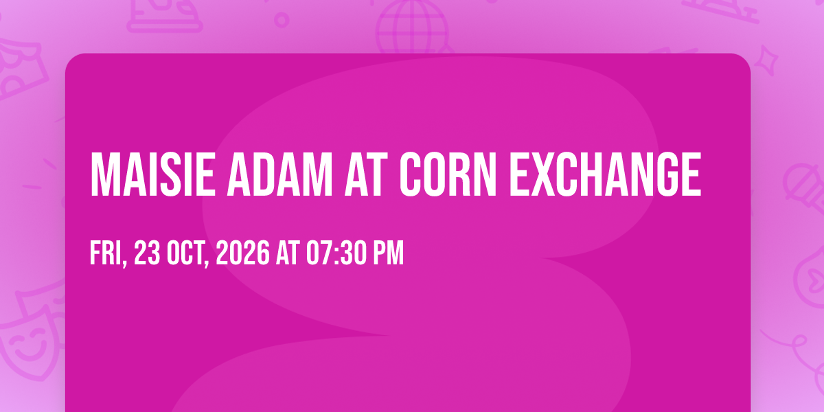 π Step into a world of wonder at Maisie Adam at Corn Exchange, where extraordinary moments await! ποΈ Located at Corn Exchange in dynamic Ipswich, EN, this event will become the talk of the town. π Join us on October 23rd, 2026 at 07:30 PM for a celebration that defies the ordinary. β¨ This curated experience brings together the best of entertainment, culture, and community spirit. Every detail has been thoughtfully planned to ensure an unforgettable experience for all our guests. π― Take advantage of this opportunity to be part of something special. π Early registration is recommended as space is limited!