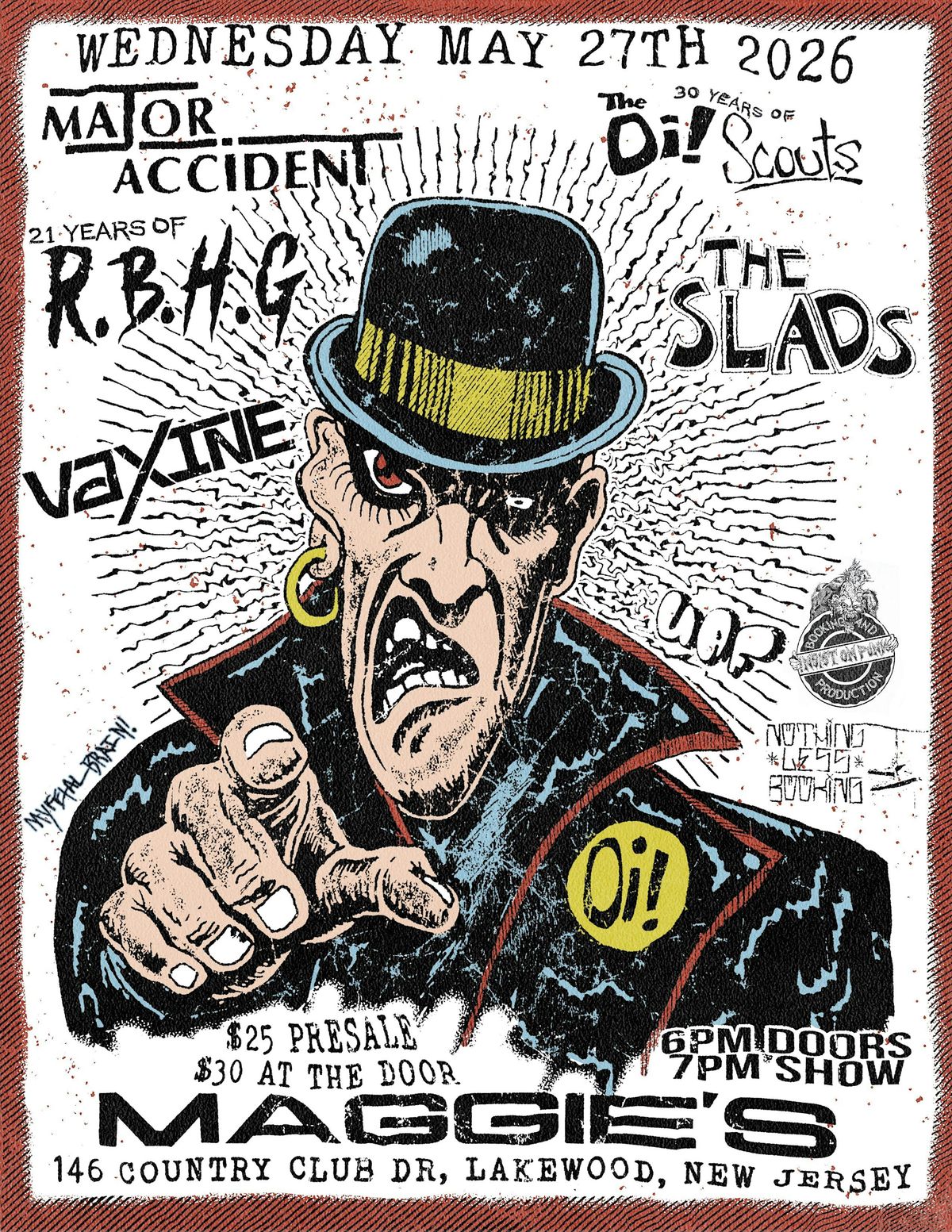 EXCITED TO ANNOUNCE MAJOR ACCIDENT with JERSEY LEGENDS Oi Scouts! , Razorblade Handgrenade, The Slads from Philly, Vaxine from NYC
