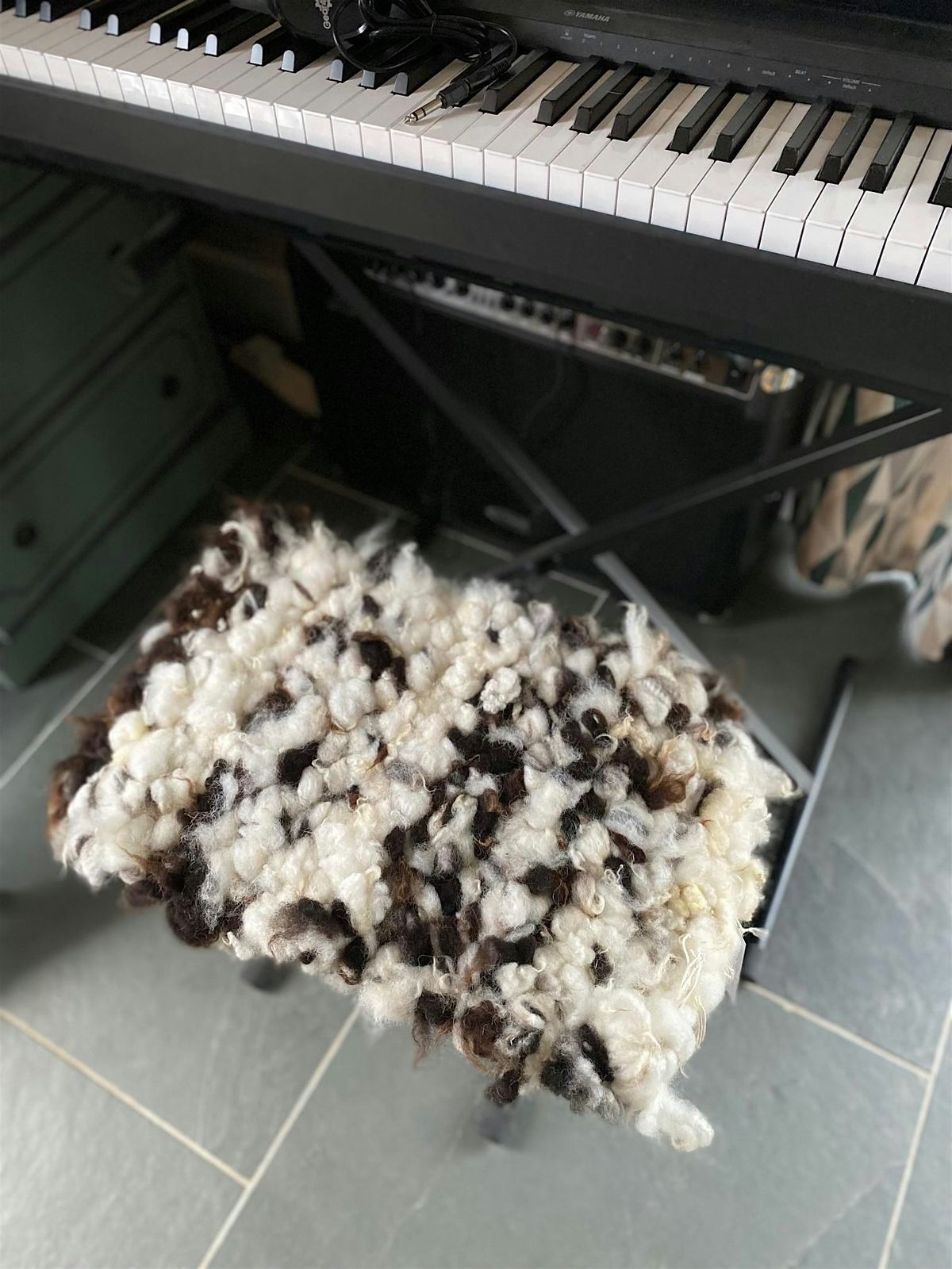 Come and make a beautiful square seat pad made from different types of washed sheep fleeces. Includes Breeds – Welsh Mule, Blueface Leicester, Corriedale, Jacob, Black Nose Valais. You can choose the fleece or fleeces you would like to use. Each fleece has a different structure, colour and texture so your seat pad will be unique.
