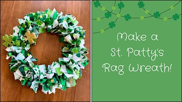 Join us for a fun and crafty evening at Aeonian...we're making festive St. Patty's Day rag wreaths—perfect for adding some Irish cheer to your home. You'll have your pick of a variety of fabric patterns and "lucky" adornments to customize your wreath however you like!☘️