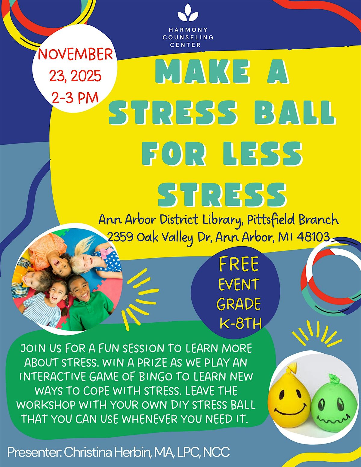 Stress balls are a great way for kids and teens to relieve stress and calm down. They can also serve as a fun distraction when you are feeling stressed. Join us for a fun session to learn more about stress. Win a prize as we play an interactive game of bingo to learn new ways to cope with stress. Leave the workshop with your own DIY stress ball that you can use whenever you need it.