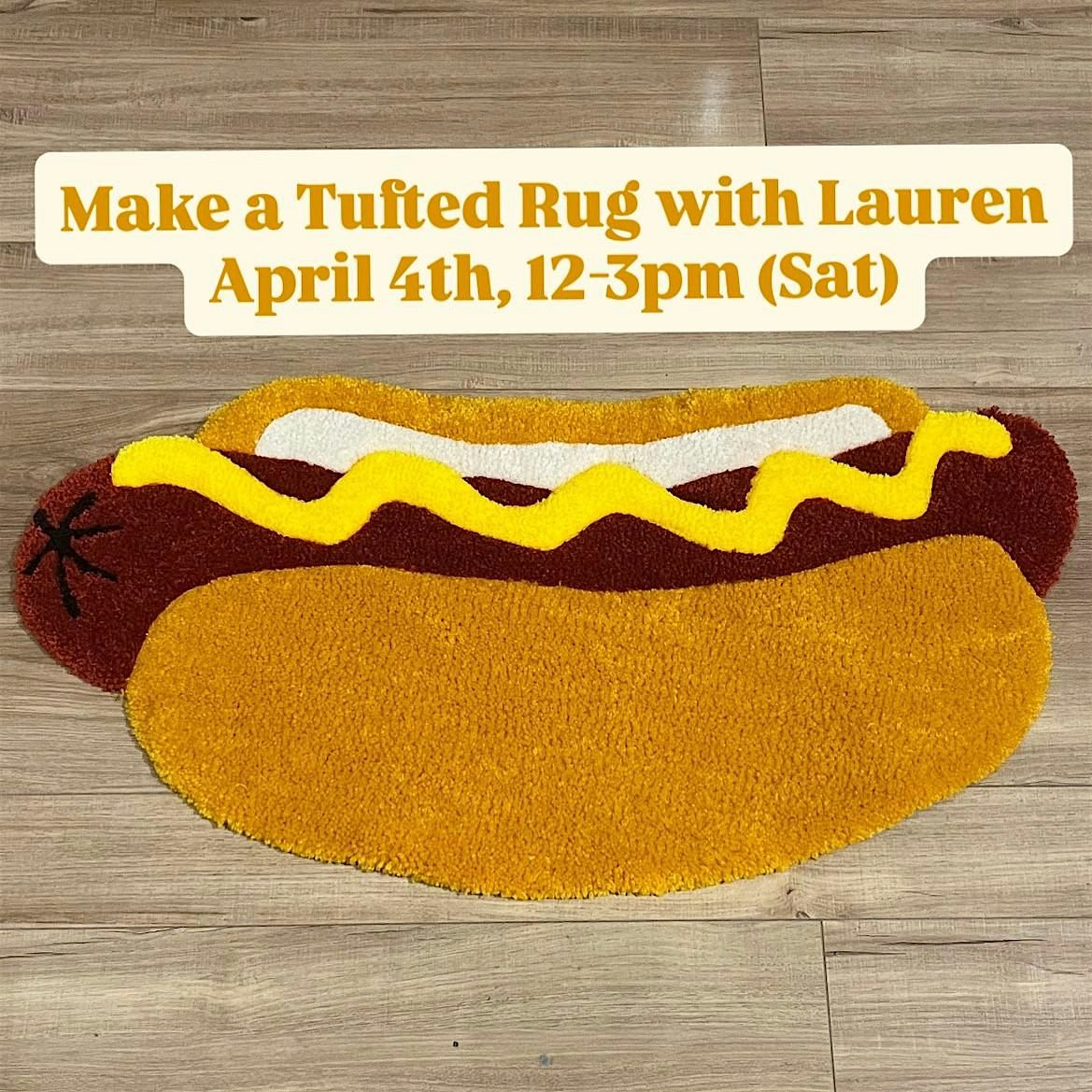 Learn to make a large (18 inch by 18 inch) tufted rug with artist Lauren from Back Alley Rug Dealer! She will show you how to tuft your own rug with a precise pointed yarn machine. You get to choose your own designs! This class is for adults, due to the machinery used. All materials provided.