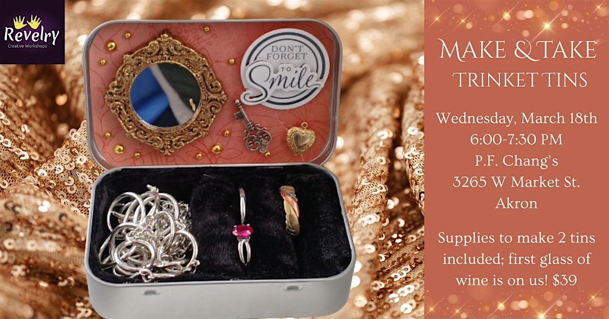 Keep your tiny treasures safe in style at our Make & Take Trinket Tins workshop! In this fun, beginner-friendly craft class, guests will design and decorate their own compact tins—perfect for slipping into a purse, gym bag, or travel tote to hold jewelry, earbuds, hair ties, and other small essentials. With a variety of papers, embellishments, and creative tools provided, you’ll customize a practical keepsake that’s both cute and functional. Leave with a finished trinket tin ready to use and the inspiration to organize your on-the-go life beautifully. All supplies for 2 tins included; first glass of wine is on us!