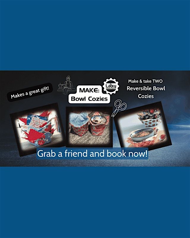 By the end of the class, you will leave with two constructed, reversible bowl cozies and the confidence to easily replicate this quick and useful project at home.