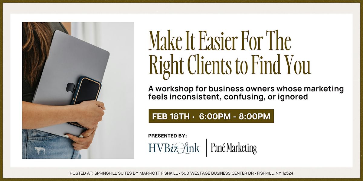 This workshop helps you get clear on the foundation that makes your marketing work better - whether you’re updating your website, introducing yourself at a networking event, asking for referrals, or sharing your business online.