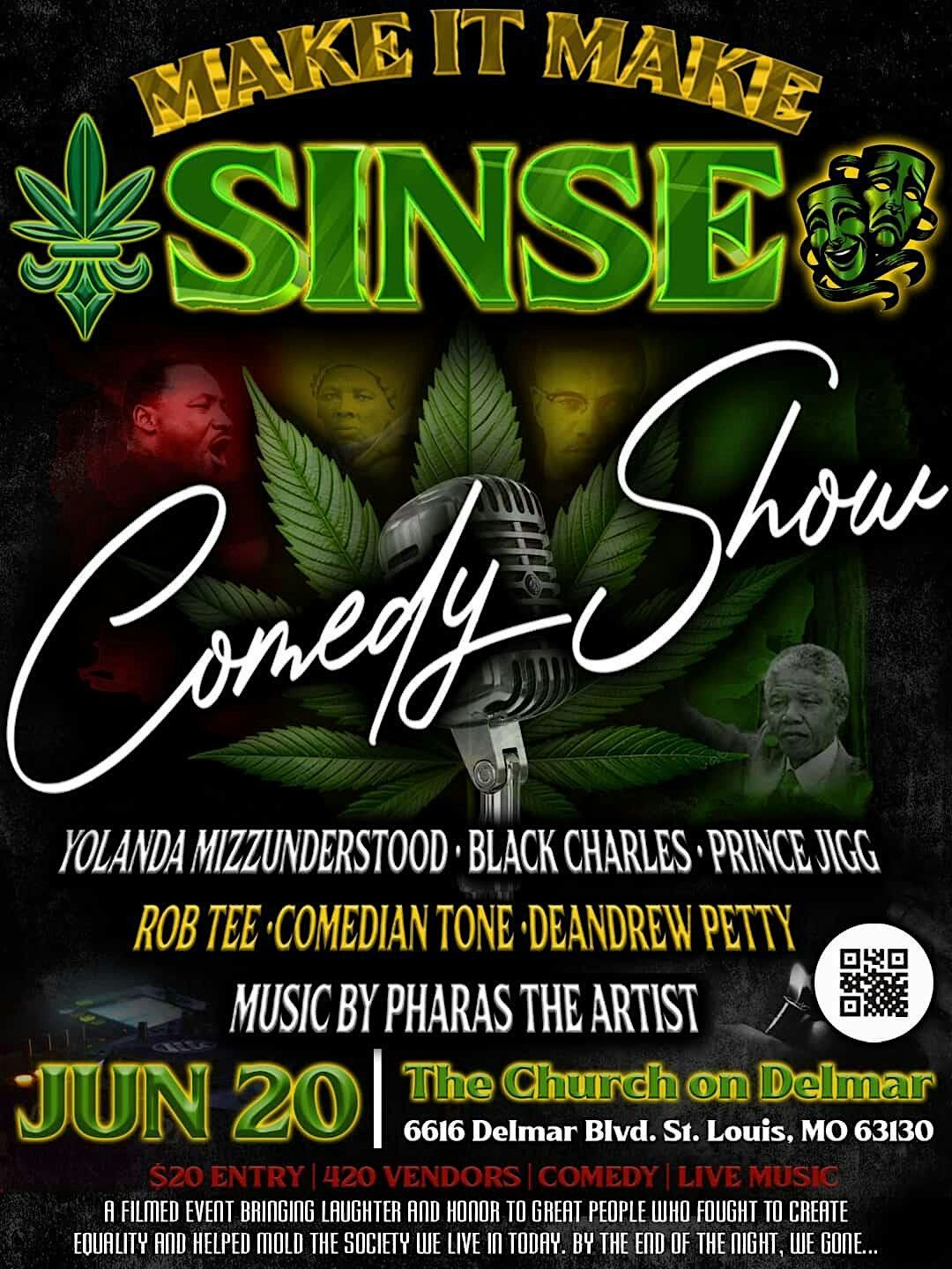 Featuring: Rob Tee Prince Jigg Yolanda MizzUnderstood Comedian Tone Deandrew Petty The Sound Setting the mood and keeping the rhythm right all night, we have the incredible Pharas The Artist providing the live soundtrack to our celebration. Why You Need to Be There Culture & Connection: Keep the Juneteenth spirit alive in a space built for good vibes and great people. Elevated Humor: A comedy show that leans into the "Sinse" of it all—expect a relaxed, high-energy atmosphere. The Perfect Follow-Up: The best way to wind down (or turn up) after the holiday festivities. Event Details When: June 20th (The Day After Juneteenth) Where: Located on Delmar Vibe: Grown, soulful, and hilarious. Tickets are moving fast! Secure your spot now and let’s Make It Make Sinse.