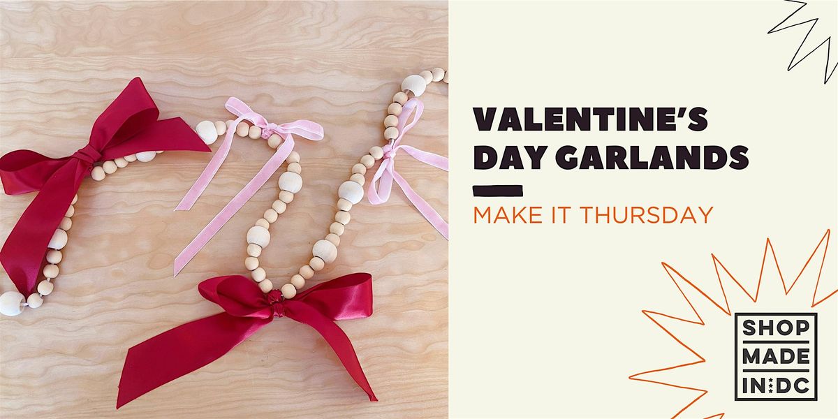 Bring some whimsy to Valentine's this year! We're making our own red & pink bow garlands to celebrate the season of love. Each guest will make a garland with assorted wooden beads and create red and pink bows. All materials included - join us to exercise some creativity and leave with your own red & pink garland.