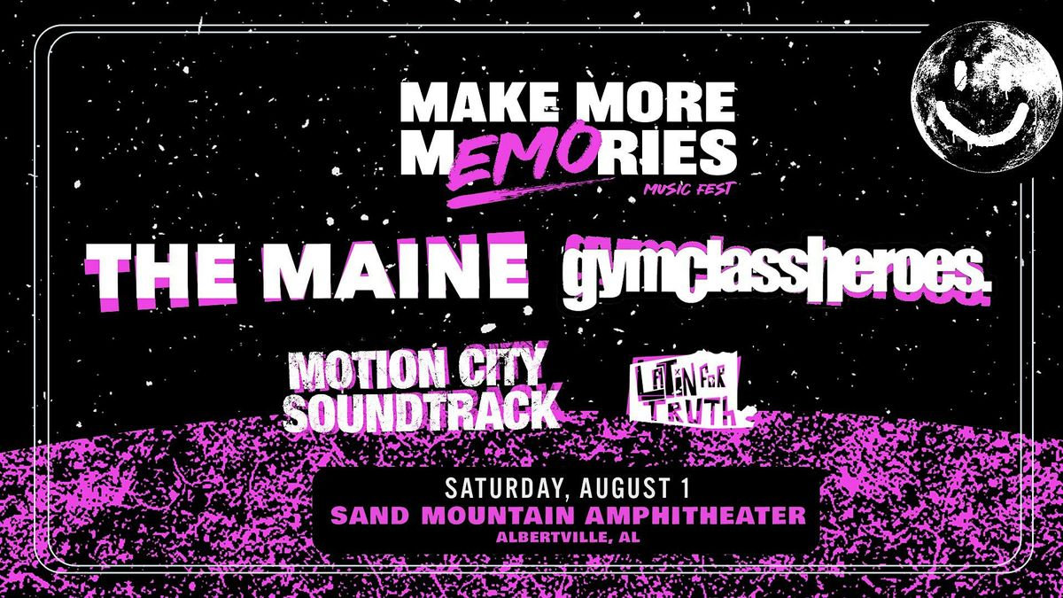 Make More mEMOries is back at Sand Mountain Amphitheater in Albertville, AL on Saturday, August 1. Featuring The Maine, Gym Class Heroes, Motion City Soundtrack, and Latin for Truth.