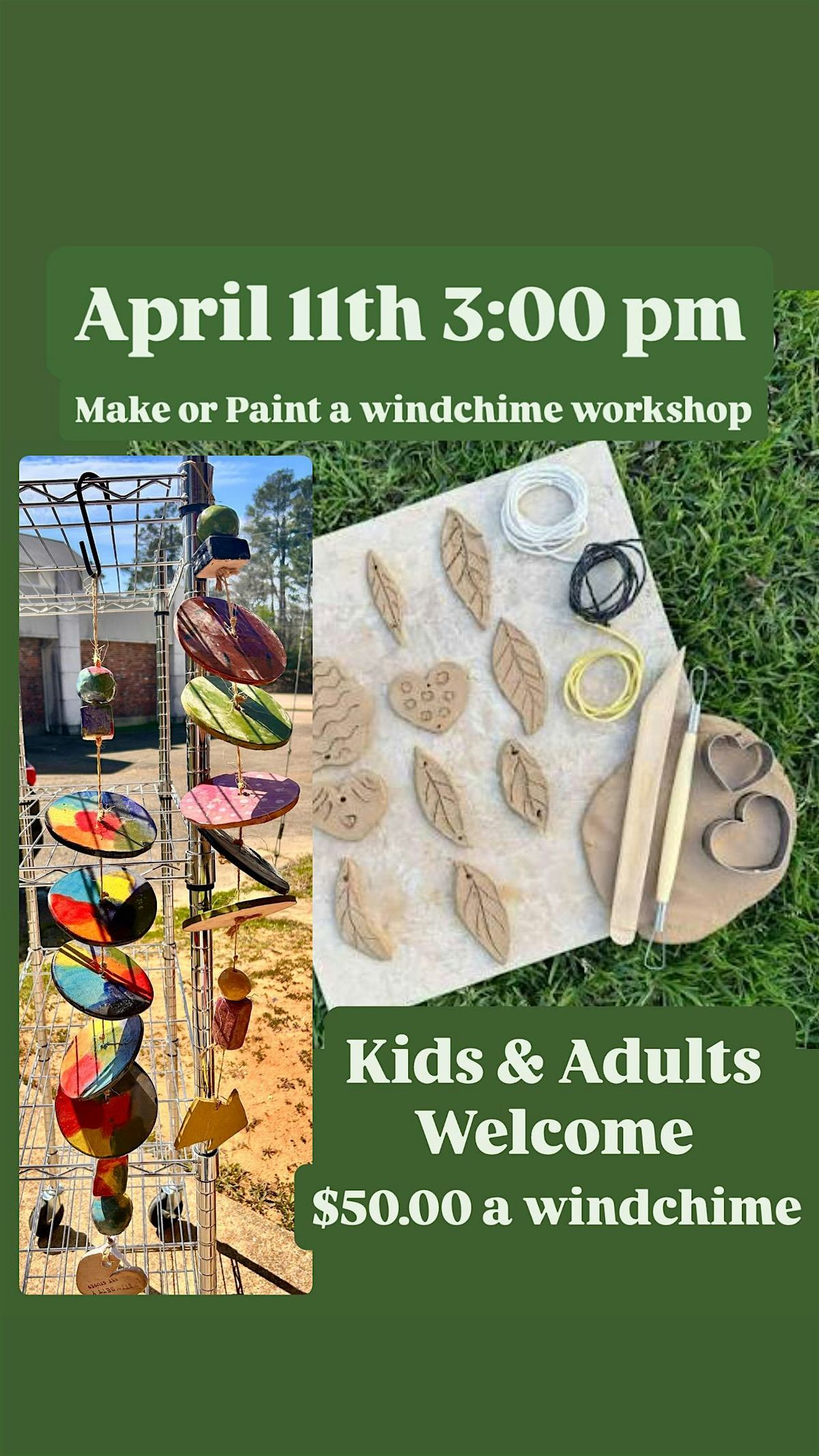 Join us in the studio on April 11th at 3:00 pm to make or paint a windchime. Adults and kids are both welcome, under 5 must be accompanied by an adult. Each ticket equals 1 windchime. Paint a chime has a 2 week turnaround time. Make a chime could have a 8 week turnaround time. Please message me after purchase to let me know whether you'd like to paint or make on the day of.