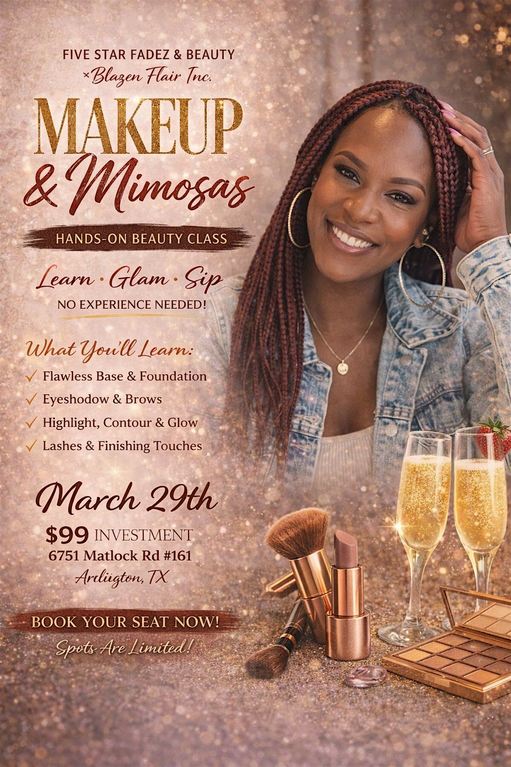 Indulge in the ultimate beauty experience where glam meets good vibes. Whether you’re a beginner or looking to elevate your everyday look, this hands-on class is designed to help you feel confident, radiant, and camera-ready.