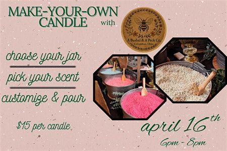 Make Your Own Candle with A Bushel & A Peck! They will be at Blue Couch with all of the supplies to build your own custom candle!
