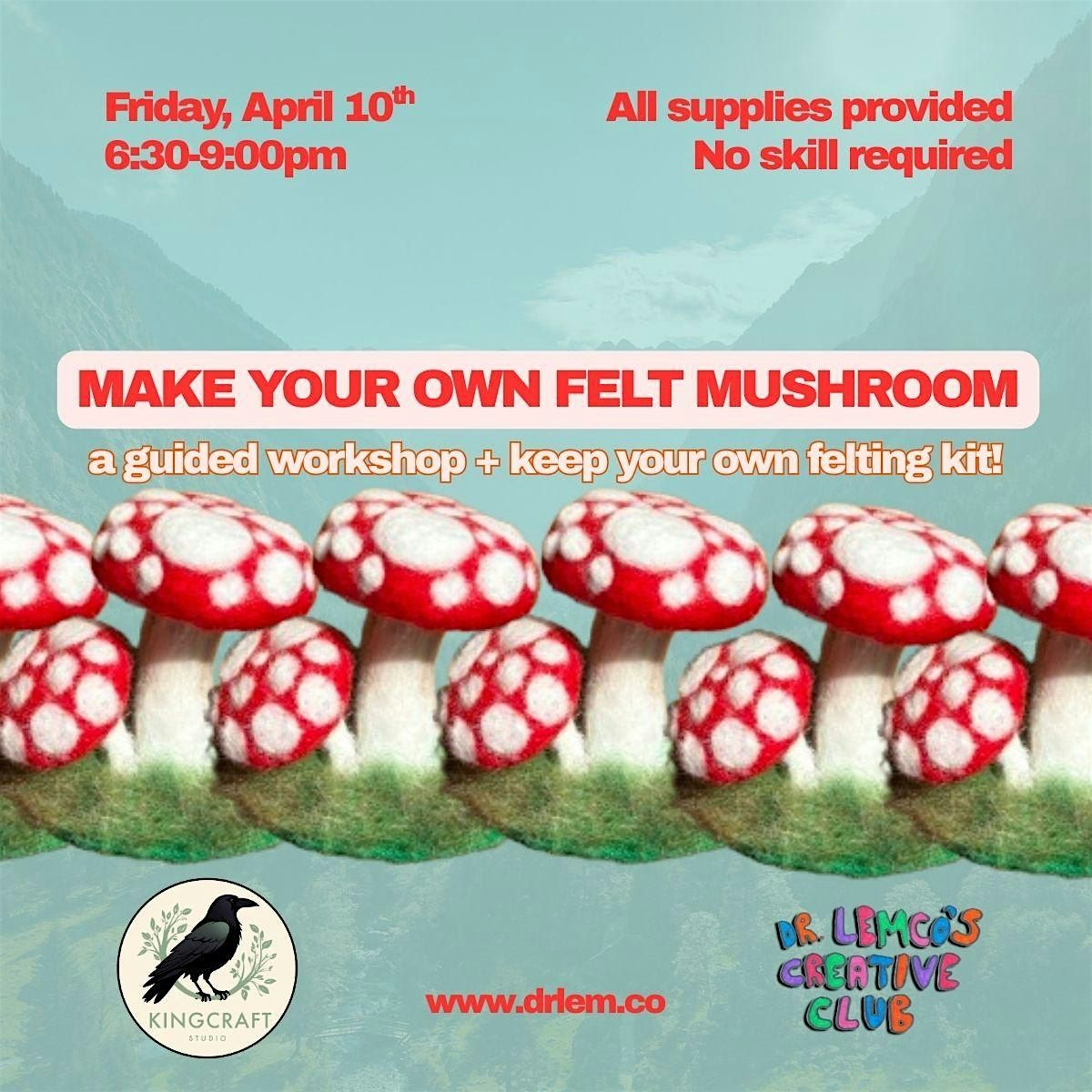 In this hands-on workshop, you’ll learn the art of felting from KingCraft Studio and create your very own charming felt mushroom!