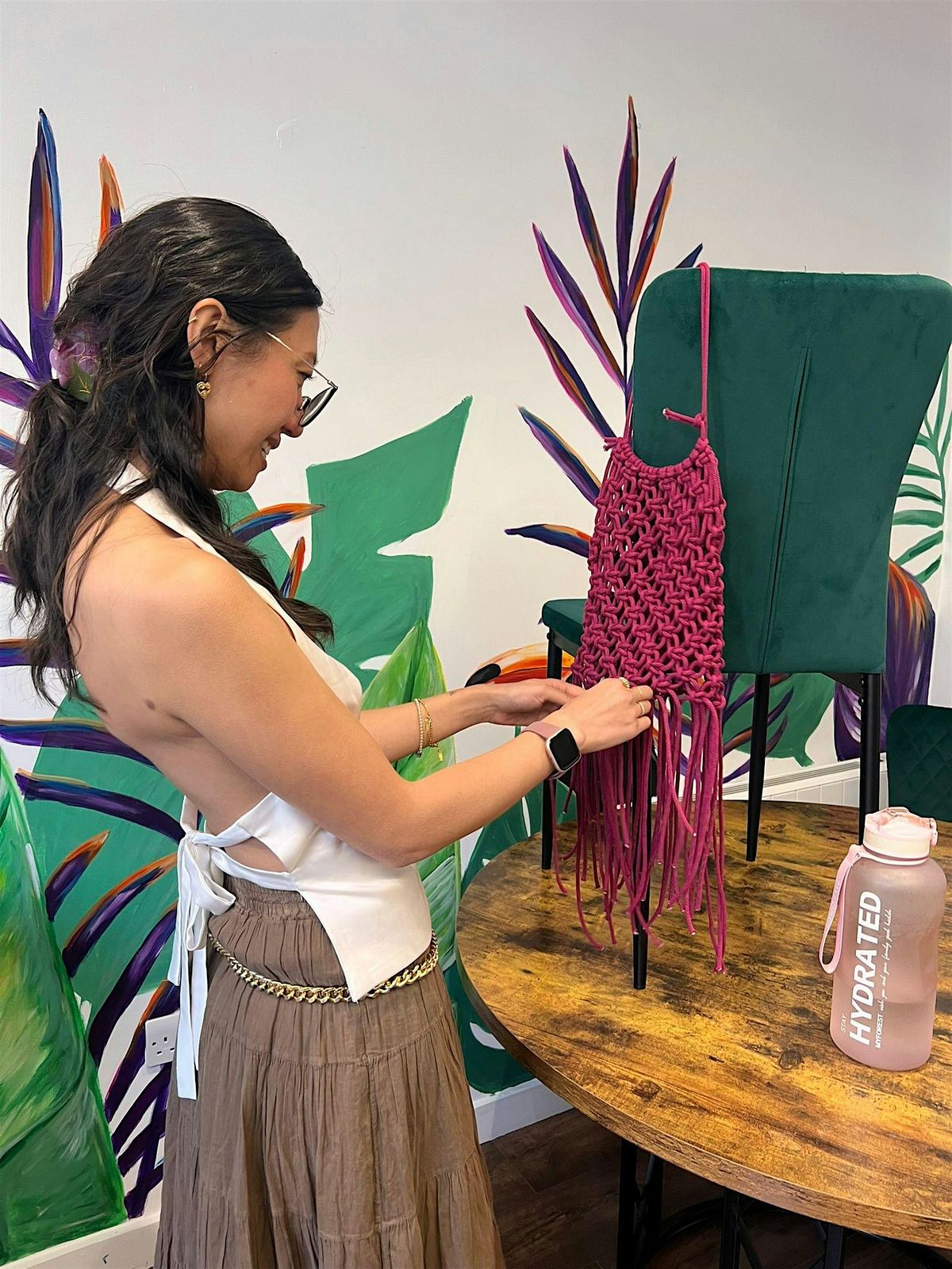 Enjoy a fun, socialable and creative 2 hours and leave with your own ready made Macrame Bag AKA the coolest market bag. All materials included.