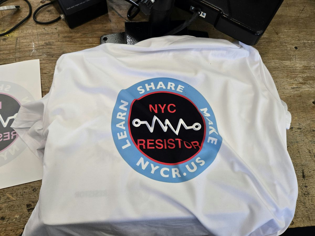 Following the class, you'll be able to come to resistor and use the equipment to make more swag at any open craft night.