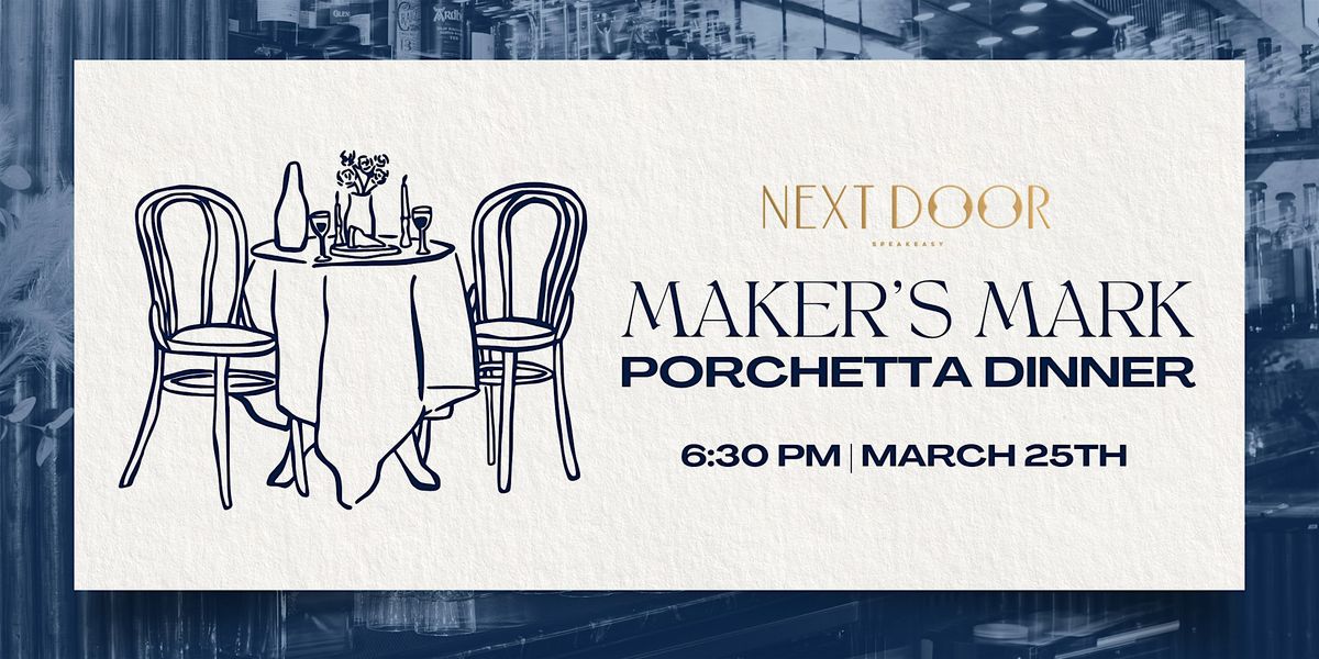 On March 25th at 6:30PM, Next Door Speakeasy hosts a special Maker’s Mark Porchetta Dinner featuring a welcome cocktail and a guided tasting of three Maker’s Mark bourbons.