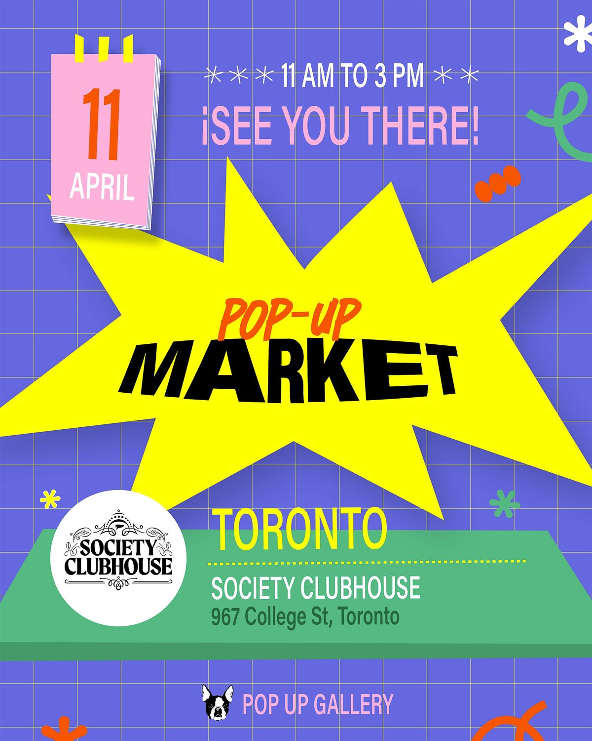 Pop Up Gallery is popping up at Society Club Toronto for a Saturday filled with local creativity, good drinks, and community vibes.